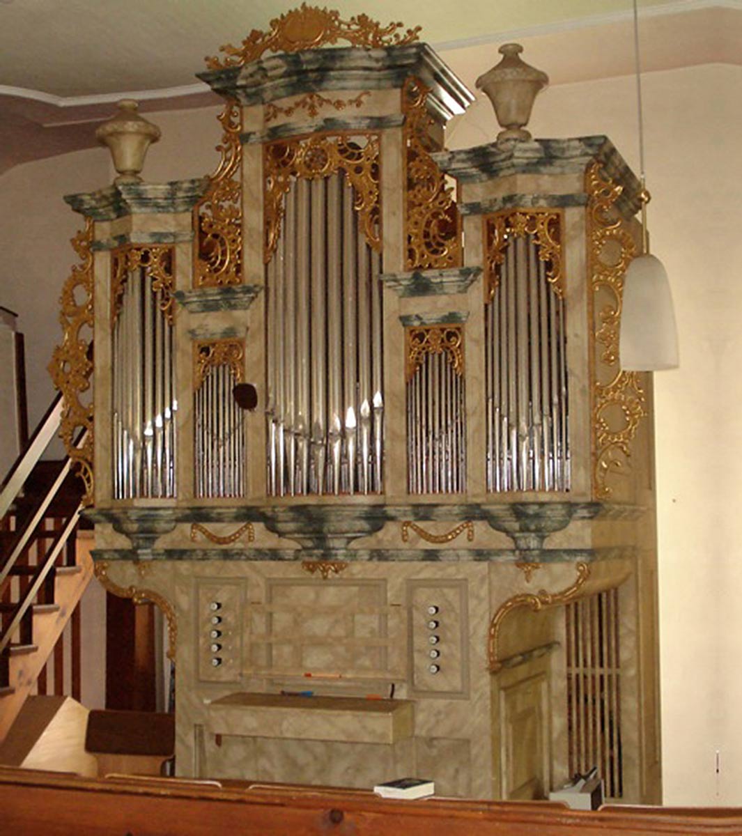 Ehemalige Winterkirchenorgel von Goll 1792, heute in der Schlosskirche Rechenberg